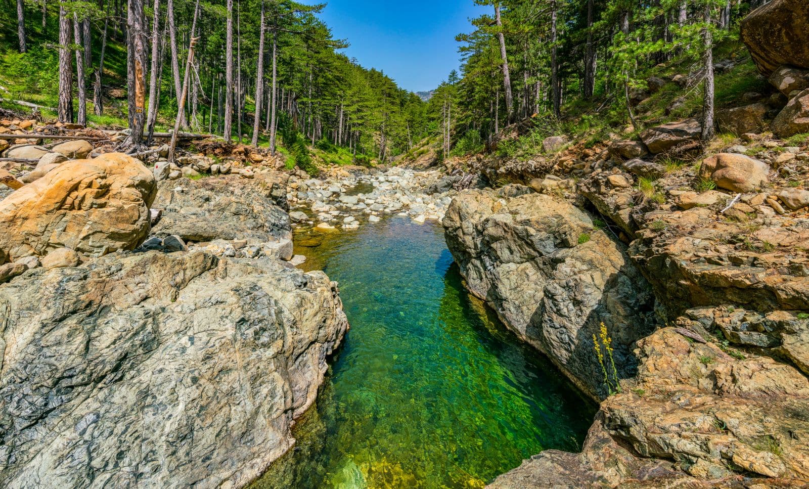 It is a new beach, because it was formed in 2008 due to a cliff collapse. Small, pebbled with transparent