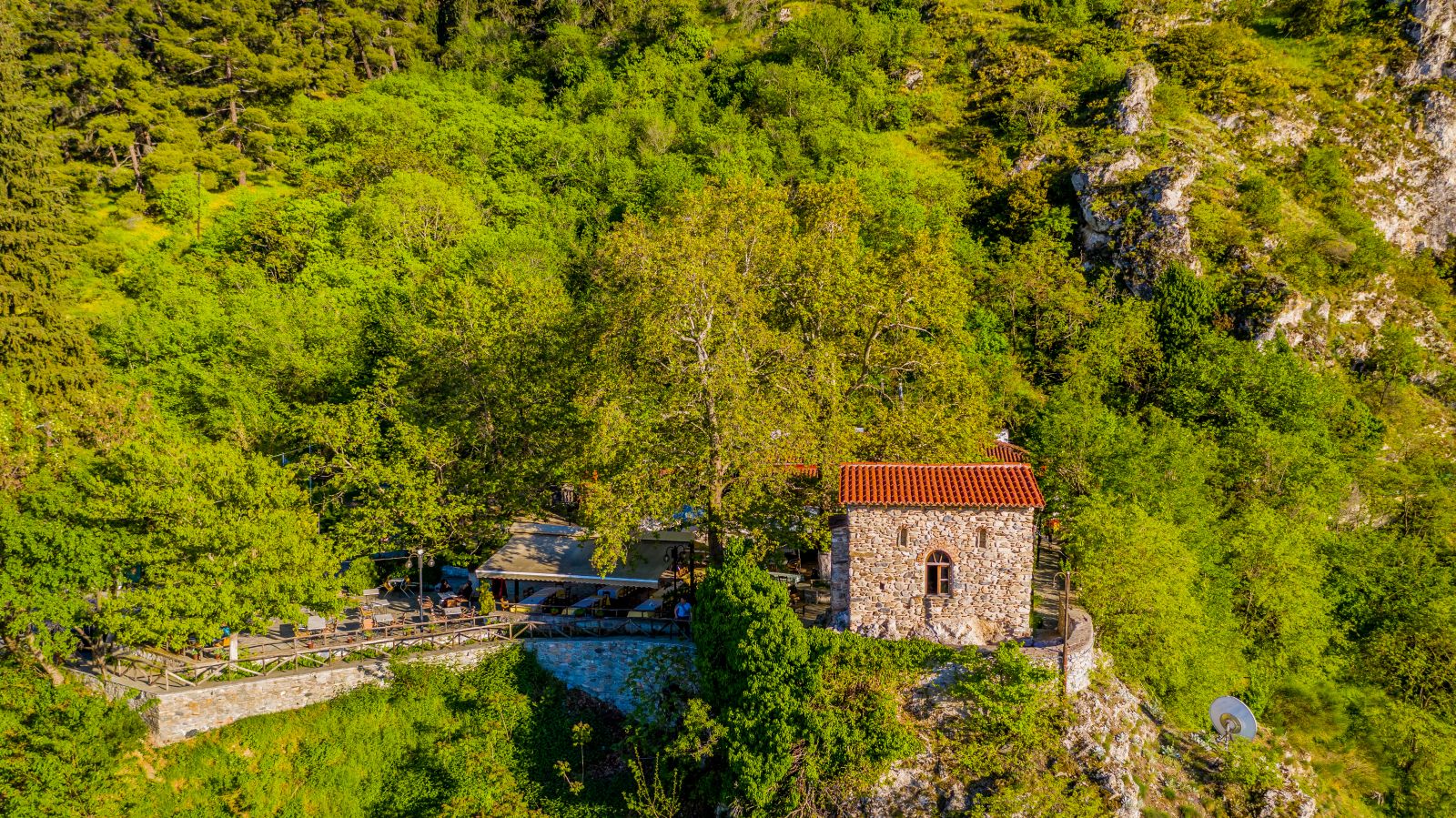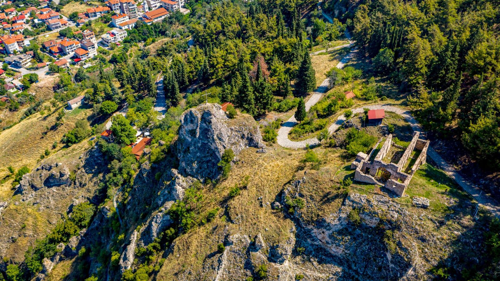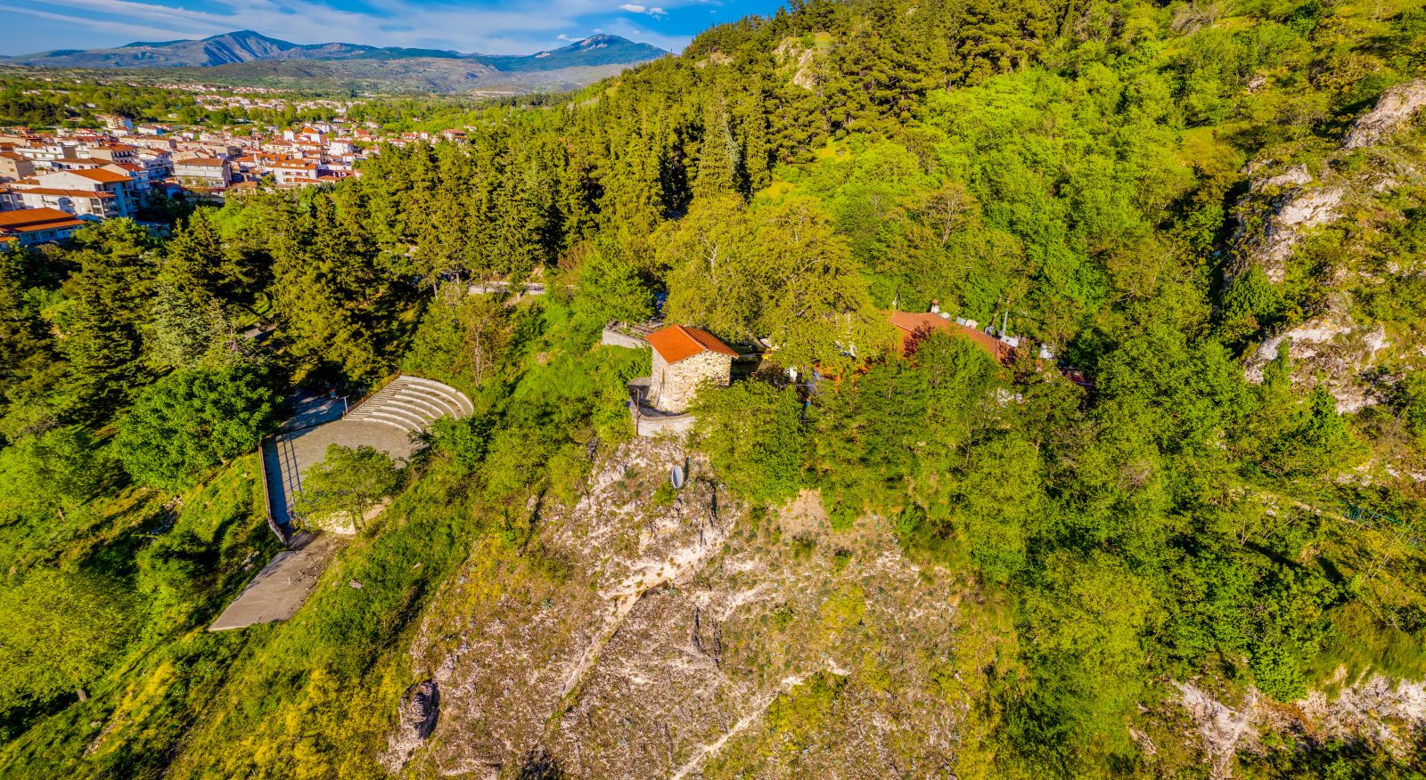 About five kilometers from the road Deskati-Paliouria on a rise under huge rocks we can find the monastery of Bounasia.