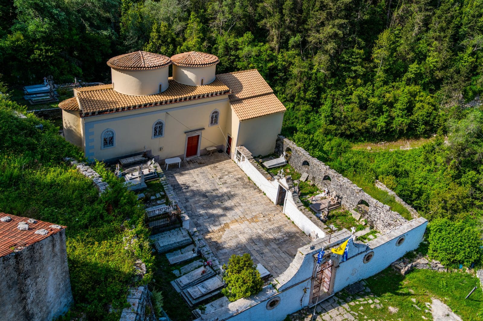 The Byzantine church of Agios Germanos is dedicated to Germanos, Patriarch of Constantinople. It is a cruciform inscribed with an