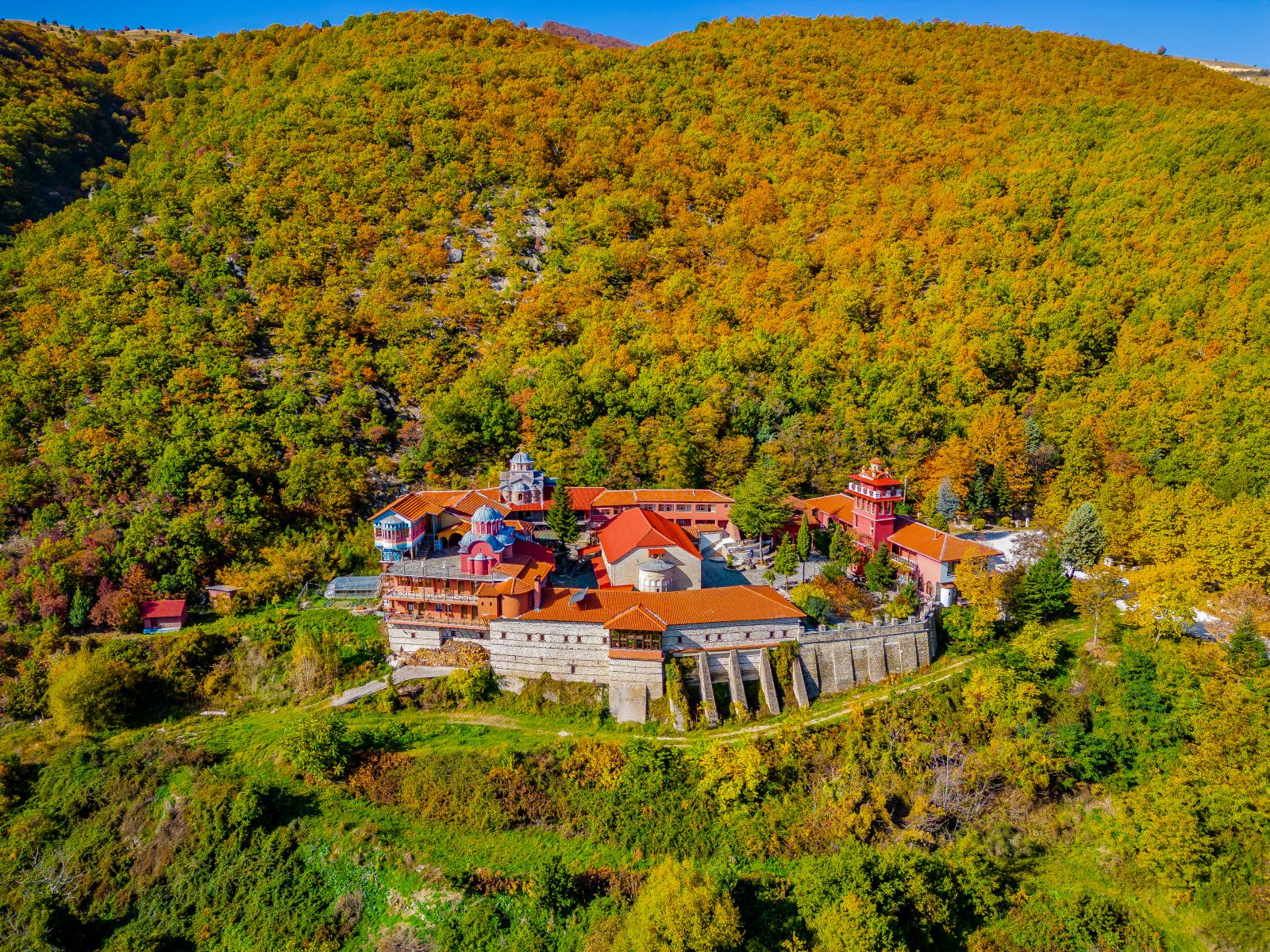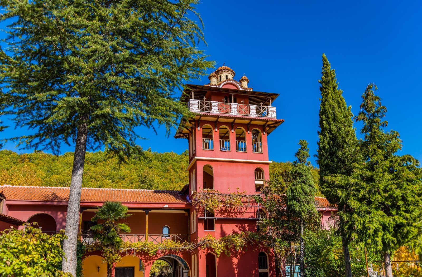 The Monastery of Karakalou, with a high and imposing tower, is located in the southeastern side of Athos peninsula, in