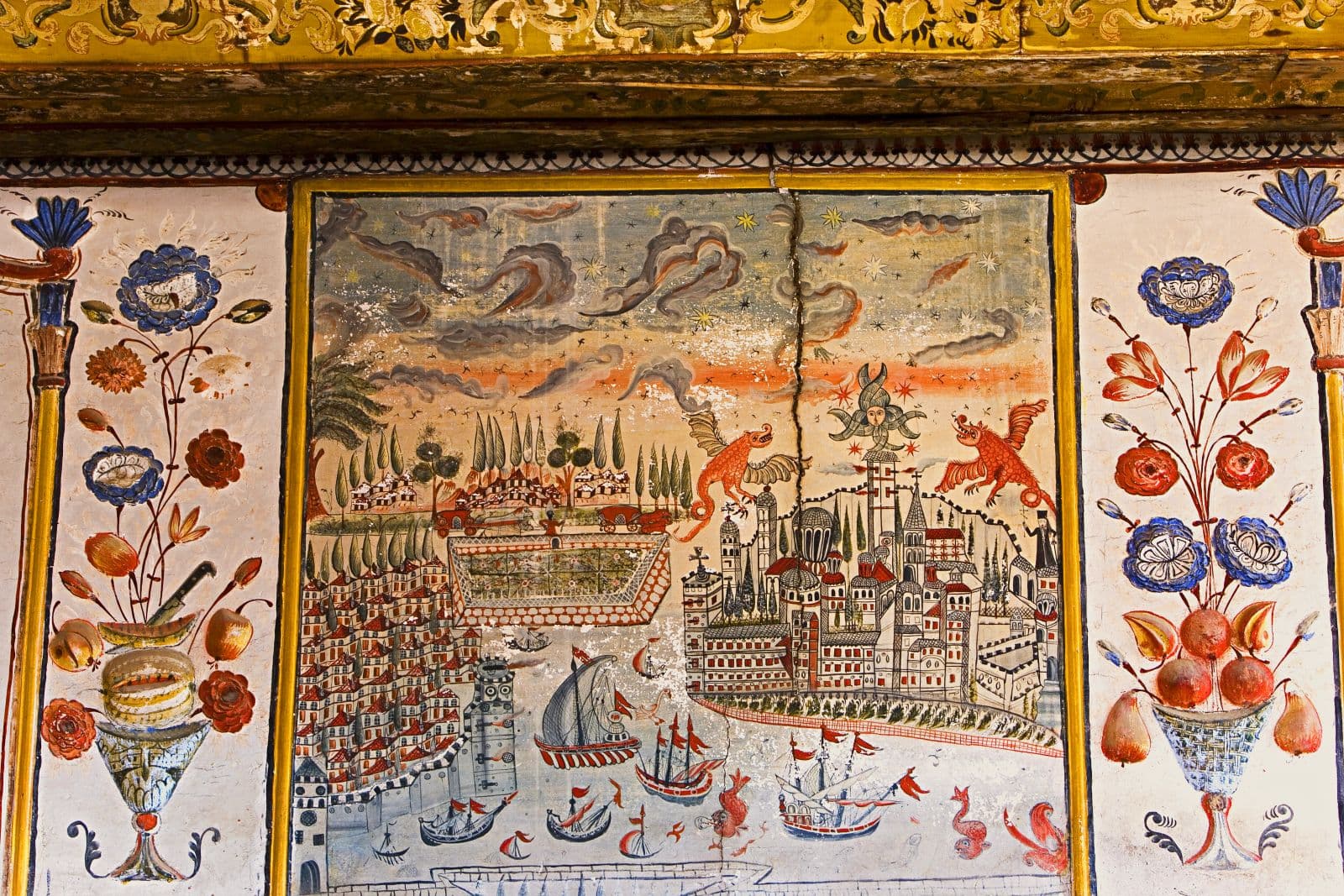 The small temple of the Saints Peter and Paul is a three-aisled basilica with murals that date to 1370-1380. It