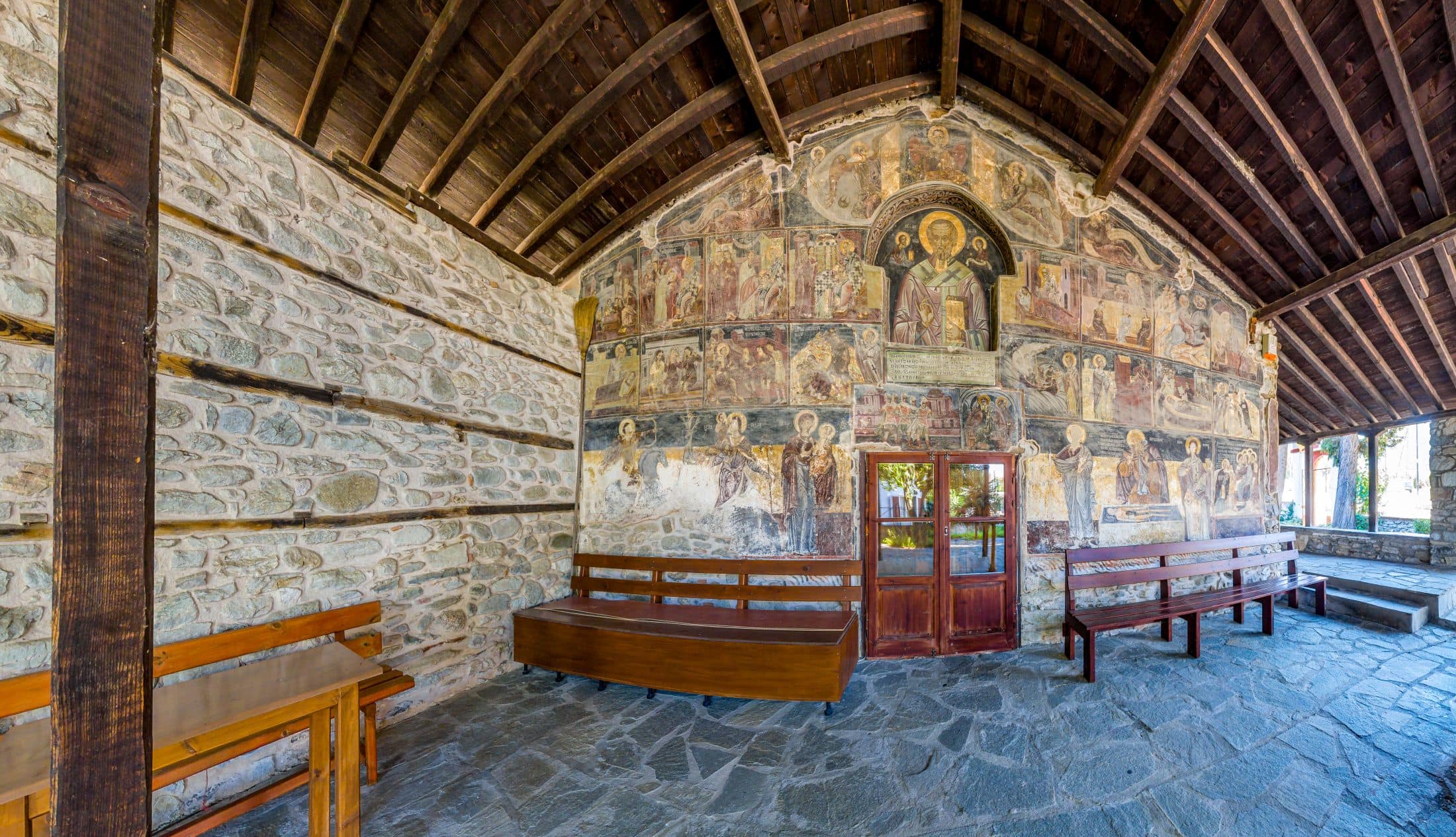 The Monastery of Dohiariou is located in the most northern offshore area of the western side of the Athos peninsula.
