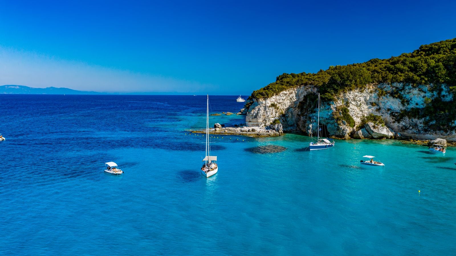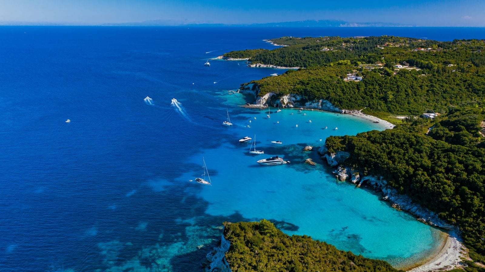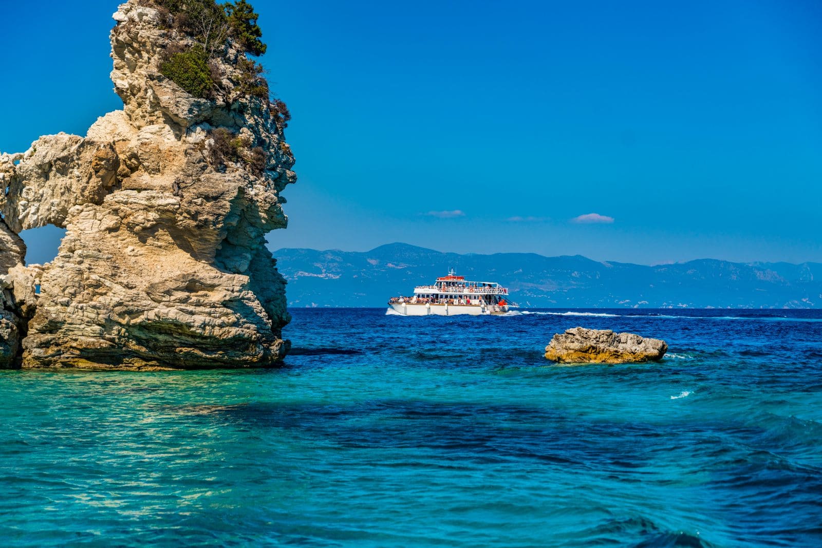 The charming beach Kipi combines a vast expanse of beach with dark pebbles with the mountain hanging just above the